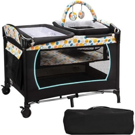 Design pieghevole e smontabile: Il fasciatoio, la culla e il lettino si rimuovono facilmente. La struttura del box è pieghevole. È inclusa una borsa in tessuto Oxford per conservare e trasportare il box quando vai a trovare i parenti o quando sei in viaggio.