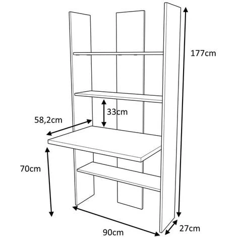 Libreria per soggiorno, studio professionale o cameretta, scrivania incorporata larga 90cm alta 177 cm profonda 58,2 cm. Alta resistenza, ogni ripiano ha una portata di 25 kg, merito dello schienale strutturale con i ripiani. Si monta in 5 min, disponibile tutorial di montaggio su youtube. Arriva composto di 1 collo. La ferramenta è premontata.E’ componibile con altre libreria della stessa serie.Se ci sono bambini in casa si consiglia il fissaggio a muro, rischio ribaltamento in caso ci si arrampichi
