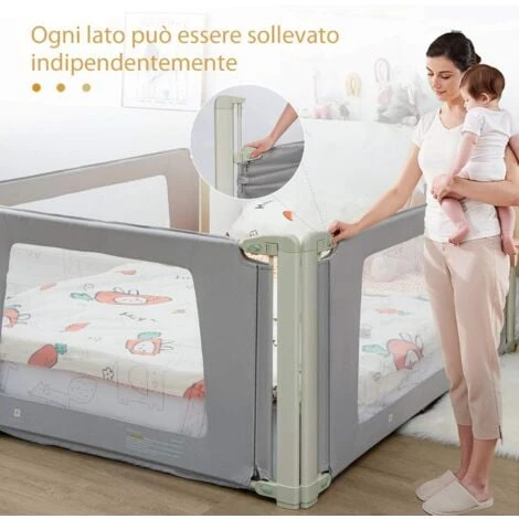 Altezza regolabile: A differenza delle sbarre sul mercato, questa ha una rete di sicurezza e si può regolare in 4 posizioni da 80 a 95 cm così si può usare per diversi materassi. Ogni lato si può sollevare indipendentemente e anche con una mano.