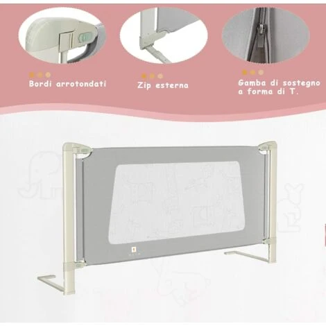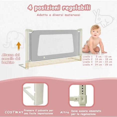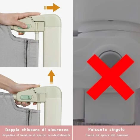 Sbarra di sicurezza per bambini: Con un design senza cuciture, questa sbarra è certificata così i bambini non cadranno dal letto quando si girano e i genitori potranno dormire tranquilli sapendo che i figli sono al sicuro. La doppia chiusura di sicurezza evita che il bambino apra accidentalmente la sbarra.