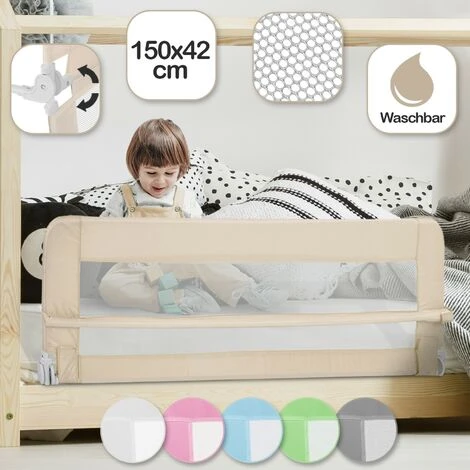 Proteggete il vostro bambino mentre dorme: è facile con questa pratica sponda da letto. I bambini spesso dormono irrequieti o hanno bisogno di tempo per abituarsi a un letto normale dopo aver dormito nella culla. Questa barriera è ideale per evitare che il bambino cada dal letto. I piedini in plastica la mantengono attaccata al materasso e, se necessario, può essere rimossa rapidamente e facilmente. Il telaio è realizzato in acciaio robusto, mentre la sponda è realizzata in tessuto a rete.