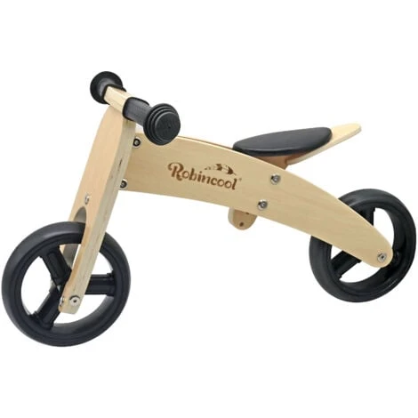 Bicicletta Senza Pedali Montessori Robincool Fast Wheels 63x32x36 Cm Trasformabile In Triciclo In Legno Eco Color Natural E Nero