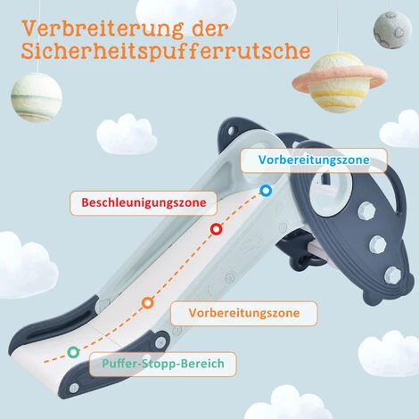 La recinzione, lo scivolo e l’altalena sono tre prodotti separati che possono essere regolati in base al livello di sviluppo del bambino e allo spazio a disposizione.