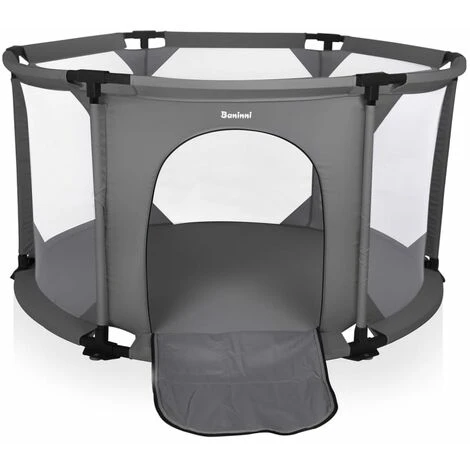 Questo box per bambini Circo è un box ricreativo compatto per bambini con una struttura in alluminio leggera che permette di trasportarlo, montarlo e piegarlo facilmente. I bambini possono giocare in tutta sicurezza nel box rotondo per interni della Baninni!