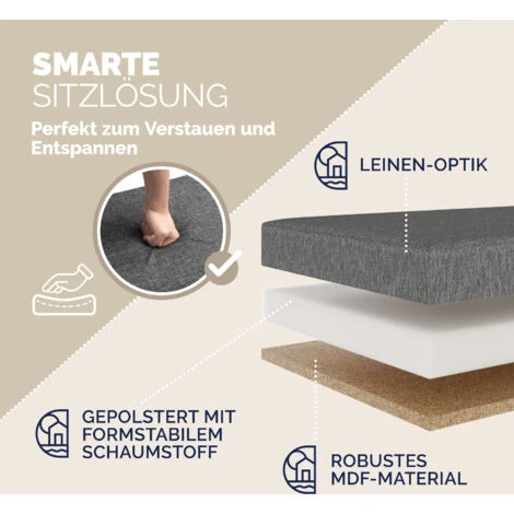 Utilizzo versatile come: Panca, poggiapiedi, cassapanca per giocattoli.