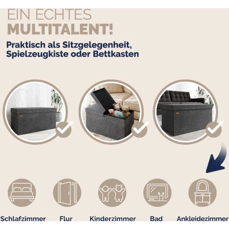 Con uno spazio di stoccaggio di 131/100 L (XL / L), la cassapanca è un ausilio molto spazioso per riporre giocattoli, libri, vestiti, scarpe e molto altro.