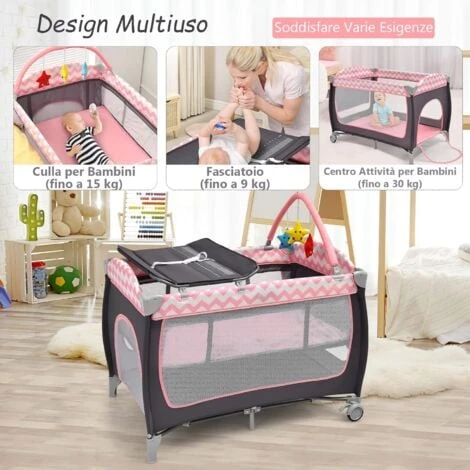- Lettino Bambino 3 in 1: Combinando una lettino da viaggio doppia altezza, un tavolo per pannolini e un box bambini, rendendo il box adatto a bambini più piccoli e più grandi(0-3 Anni).
