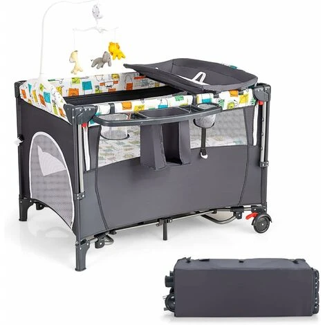 - Design Multifunzionale 5 in 1: Questa culla multifunzionale si combina con fasciatoio, culla accanto al letto, letto, culla con angolo di oscillazione 0°-15° e centro attività con ingresso laterale. Con 3 giocattoli pendenti e il carillon. La scaffale di stoccaggio e pacchetto laterale sono perfetta per riporre pannolini, asciugamani di carta ecc.