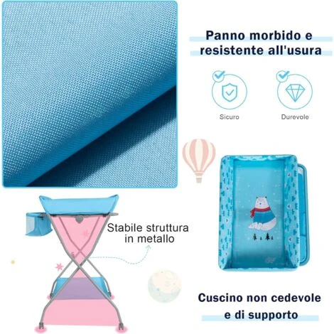 Ti fa male la schiena quando ti pieghi per cambiare il pannolino del bambino? Il nostro fasciatoio ha a cura alla comodità dei genitori e ha l’altezza rialzata per poter cambiare il pannolino e interagire comodamente con il bambino. Inoltre, c’è tanto spazio per tutto l’essenziale del bambino e aiuta a mantenere la stanza pulita e ordinata. Puoi usare il fasciatoio in tutta sicurezza perché la struttura di acciaio resistente è robusta, i cuscinetti sono ad alta resistenza e la copertura in tessuto è traspirante e delicata sulla pelle. Inoltre, quest’organizer si può piegare in una dimensione compatta e spostare facilmente con le ruote lisce e risparmia spazio quando non è in uso.