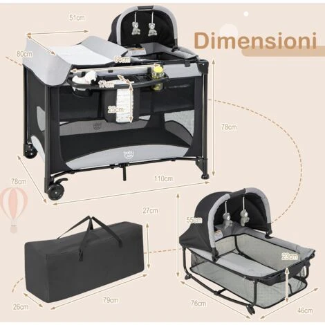 - Design Portatile e Facilità di Spostamento: Caratterizzato da un design rapido e pieghevole, questo lettino viene con una borsa per riporre e trasportare facilmente. Le 2 ruote con freno consentono di spostare questa culla ovunque in modo semplice e flessibile.