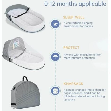 Materiale sicuro: realizzato in lino e cotone di alta qualità, senza ingredienti nocivi, tocco confortevole, morbido, traspirante e non soffocante, ben cucito, resistente agli strappi, sicuro per i bambini. Culla pieghevole con zanzariera: adatta a tutti i neonati, con un design bionico che imita il comodo grembo materno, fornendo al bambino un ambiente confortevole. Ci sono giocattoli carini nella culla con cui il tuo bambino può giocare. Multifunzione: questo lettino da viaggio portatile non solo può essere utilizzato come culla, ma può anche essere ripiegato in una custodia per soddisfare le esigenze delle madri. Dimensioni: 92 cm x 45 cm x 14 cm. La culla portatile è perfetta per letto, divano, box, viaggi e altro ancora. Anche il miglior regalo per i bambini. Lavabile: il comodo lettino da viaggio per culla bionica è rimovibile, facile da pulire, non facile da sbiadire, facile da asciugare in un luogo ventilato e riutilizzabile.