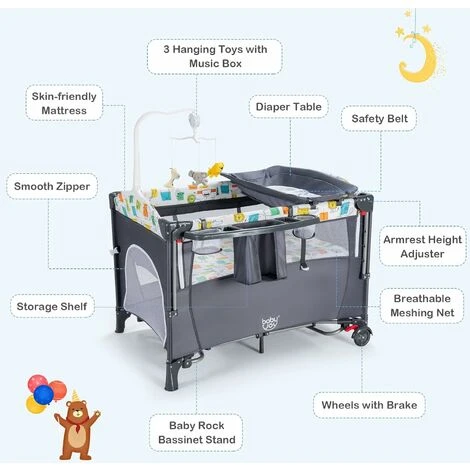 - ★Comodo vassoio portaoggetti e giocattolo appeso★ Il vassoio portaoggetti può essere installato su qualsiasi bracciolo per riporre pannolini, biberon, fazzoletti e altre necessità. Il giocattolo appeso è dotato di 3 simpatici pupazzi e una funzione rotante, mentre può emettere una dolce musica per calmare il bambino e farlo addormentare rapidamente.