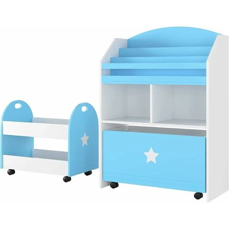 Il set di scaffali per bambini Homfa è composto da una libreria e un carrello. Il tuo bambino può riporre i suoi libri preferiti nella parte superiore, mentre le scatole sottostanti offrono molto spazio per riporre i giocattoli. Grazie al cassetto e ai vani pensili, molti giocattoli, bambole e libri possono essere ordinati e facili da trovare.