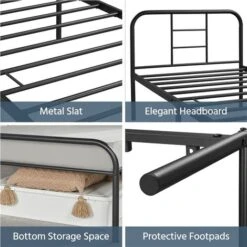 Yaheetech Struttura Letto Singolo In Ferro Battuto A Doghe In Metallo 90 X 190 Cm Nero