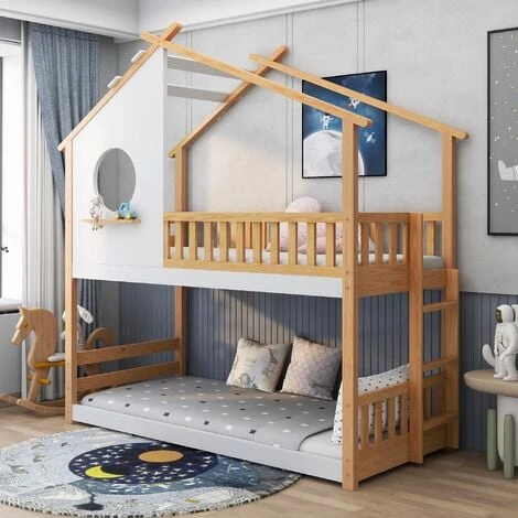 - Struttura stabile. La struttura in legno di pino e le spesse finestre in MDF rendono il letto più stabile. La struttura a telaio della casa del copriletto è amata dai bambini e stabilizza la struttura dell’intero letto.