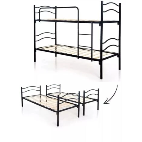 Pratica struttura salvaspazio, per camere piccole con grandi necessità. Nella camera dei tuoi figli ci sarà molto più spazio per il gioco e lo studio, grazie all’ottimizzazione permessa dalla struttura in acciaio di questo letto a castello. Sicuro, economico ed estremamente pratico, all’occorrenza i letti si possono anche dividere diventando così due letti singoli.