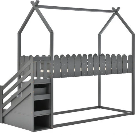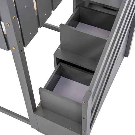 - Il design del letto a castello con scale rende questo letto un parco giochi per bambini, mentre due cassetti sulle scale offrono ulteriore spazio di archiviazione.