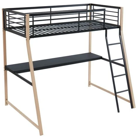 2 in 1, il letto a soppalco MALICIA mette a tua disposizione un letto sopraelevato di 90 x 190 cm nonché un ampio spazio di lavoro grazie alla scrivania angolare integrata. Asimmetrica e bicolore, la sua silhouette lo renderà l’elemento di arredo chiave della tua casa, moderno e inedito.