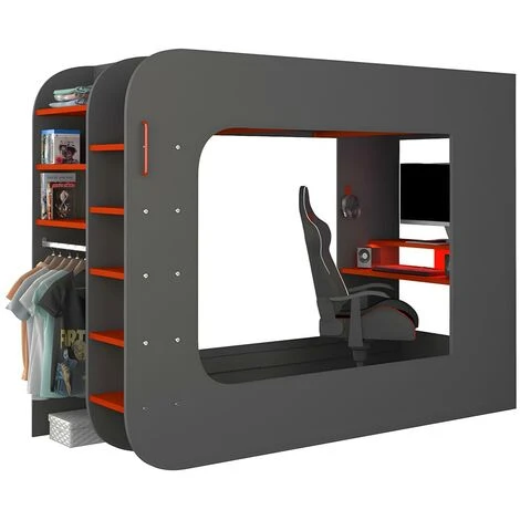 Immaginato per permetterti di ottimizzare al massimo lo spazio, il letto WARRIOR è composto da una scrivania con LED ma anche di uno spazio portaoggetti ideale per abiti e accessori dei tuoi videogiochi.