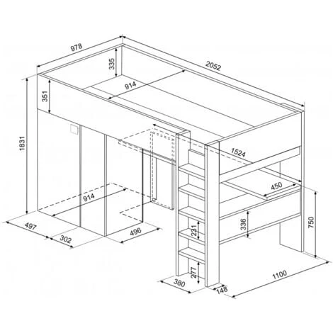 - Letto alto con scrivania sottostante e armadio.