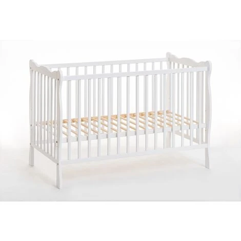 Lettino in legno di pino (proveniente da foreste certificate da FSC) con due altezze di rete. Uno dei lati del letto ha tre sbarre rimovibili. Possono essere rimossi quando il bambino inizia a arrampicarsi per entrare e uscire dal letto. Materasso e biancheria da letto non inclusi. Le testiere di letto modellate sono conforme alla norma europea EN 716-1: 2008 + A1: 2013 e EN 716-2: 2008 + A1: 2013. Conforme alla norma EN 71-3:2013.