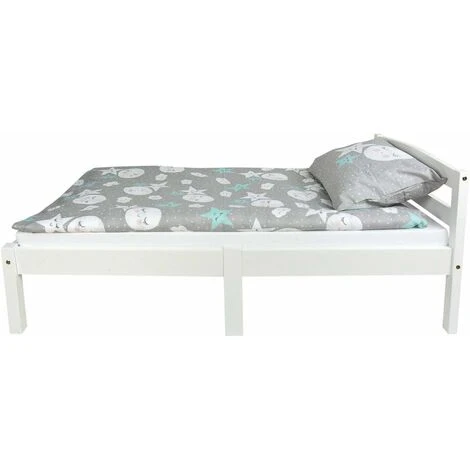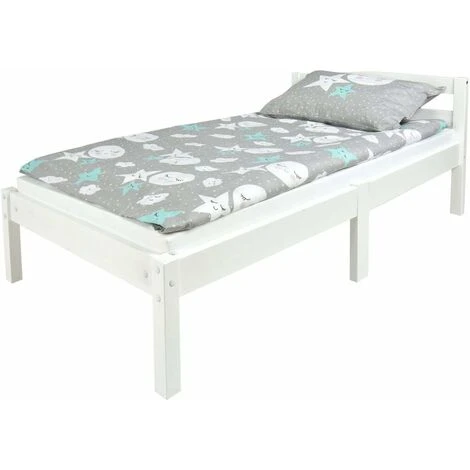 Il letto è fatto in legno massello solido e resistente nel classico colore bianco. Adatto anche per interni classici e moderni. Una finitura semplice e naturale garantisce un riposo perfetto.
