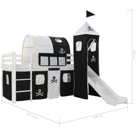 Questo letto a soppalco per bambini a tema pirata sarà una vera e propria attrazione nella camera da letto del vostro bambino. Il letto a soppalco ha una costruzione solida e viene consegnato con le doghe del letto, uno scivolo, una scala e una tenda a tema pirata, copertine laterali e un baldacchino.