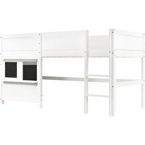 Naturale e minimalista, questo letto da gioco con pannello è pulito e sobrio nei toni neutri e monocromatici. La lavagna sotto questo letto a castello è progettata per consentire ai bambini di scarabocchiare e dare libero sfogo alla loro immaginazione