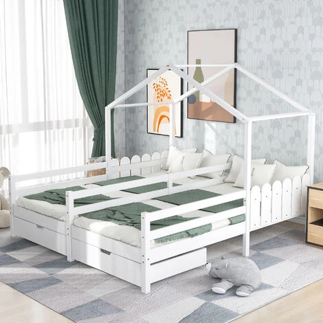 【Unique Split Double Bed Design】La squisita forma del tetto e il design del letto matrimoniale diviso in due letti singoli dalla recinzione centrale rendono il letto più squisito e unico, pratico e bello.