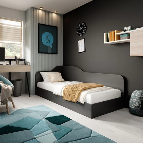Il letto singolo contenitore Alex Gihome®, realizzato nell’elegante finitura antracite, è caratterizzato da linee curve che lo rendono originale e sicuro per la camera di bambini e ragazzi. É dotato di box contenitore, utile per guadagnare spazio e per ritirare la biancheria della camera: presenta infatti due pistoni di sollevamento che facilitano l’alzata della rete sul lato lungo del letto. Il box è diviso internamente in due vani, necessari per rafforzare la struttura complessiva del letto e per dividere la biancheria. Il box contenitore è utilizzabile unicamente acquistando il set materasso con rete Elisir Gihome®.