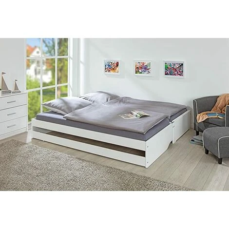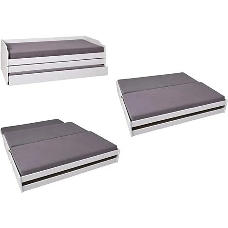 LETTO SINGOLO TRASFORMABILE IN 3 LETTI. PINO TINTO BIANCO. 90X200. ARTICOLO IN KIT.