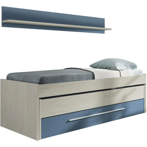 STRUTTURA E UTILIZZO – Struttura per cameretta doppia adatta a due materassi singoli, quello superiore da 90×190 cm e quello inferiore da 90×180 cm – Incluso un secondo letto estraibile, un cassettone e una mensola abbinata – Il giroletto con colorazione bianco vintage e dettagli di colore azzurro è perfetto per l’arredamento di una stanza per bambini o per accogliere gli amici durante un pigiama party – Le reti non sono incluse – L’aggiunta del cassettone utilizzabile come box contenitore, è una soluzione salvaspazio che vi permetterà di riporre comodamente lenzuola, cuscini e piumoni.