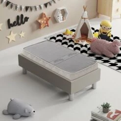 La linea di materassi per bambini “Baby Soft” è interamente realizzata in Italia, con una lastra inschiumato monoblocco a 10 centimetri di spessore, che sorregge il bambino quando dorme. Indicato per i bambini con esigenze particolari in merito al di riposo, il rivestimento in tessuto termico garantisce che la temperatura di riposo sia sempre costante. La struttura cellulare aperta della lastra interna evita gli accumuli di umidità. Lo spessore totale è 11 centimetri.