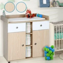 Design elegante e gran spazio sono le caratteristiche principali di questo mobiletto fasciatoio. Con un sacco di spazio in 2 cassetti, 2 scomparti con ante e 3 ripiani aperti, il nostro fasciatoio diventa l’aggiunta ideale alla stanza dei neonati. Cambiare i pannolini sul fasciatoio ampio e avere pannolini, vestiti, prodotti per la cura del bambino e molto altro a portata di mano vi farà sentire a vostro agio. Il colore naturale di legno di questo mobile per bambini si adatta facilmente a una vasta gamma di stili d’interno.