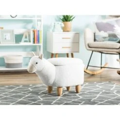 Sgabello Bambini Forma Alpaca Poliestere Bianco Imbottito Gambe Legno Alpaca