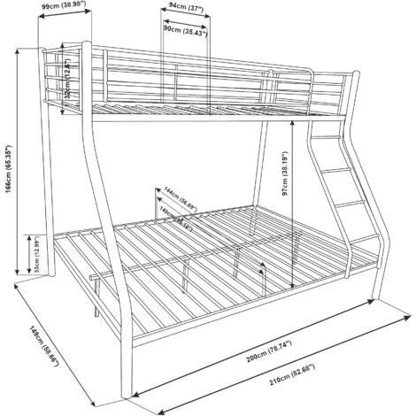 – Distanza tra il letto inferiore e superiore: 97 cm