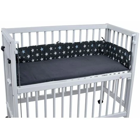 Il simpatico nido intarsiato antracite con motivo a stelle è particolarmente adatto per il lettino da letto Sophie della tiSsi, ma è universale, quindi può essere utilizzato anche con altri lettini con le stesse dimensioni.