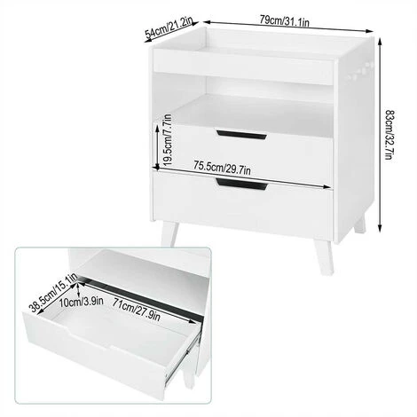 - ?Materiale sicuro e durevole? fatto di MDF (E1) Questo tavolo che cambia bianco è robusto e stabile, con una superficie liscia, resistente all’acqua e resistente ai graffi . Capacità di carico: superficie di lavoro – 50 kg, ciascun cassetto – 15 kg