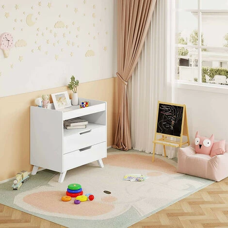 - ?Cambiando tavolo e mobile 2 in 1? Questo mobile per bambini è sia un tavolo che cambia e una cassetta con 2 cassetti e 1 compartimento aperto. È ideale per le famiglie con neonati e piccoli vivai