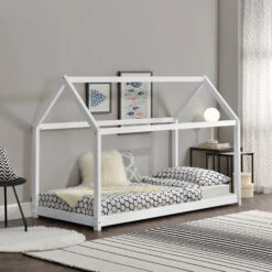 Questo letto per bambini è fatto di legno di pino resistente, e ha un design casa piccola, che lo rende favorito di tutti i bambini.