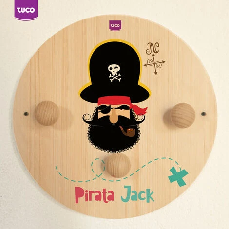 Attaccapanni bambini a tema Pirati con originali disegni fatti a mano per arredare la cameretta in modo simpatico e colorato.