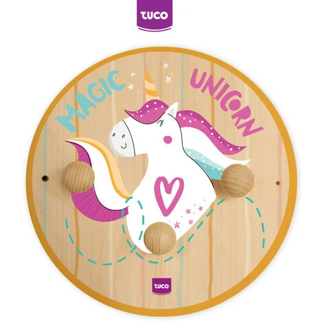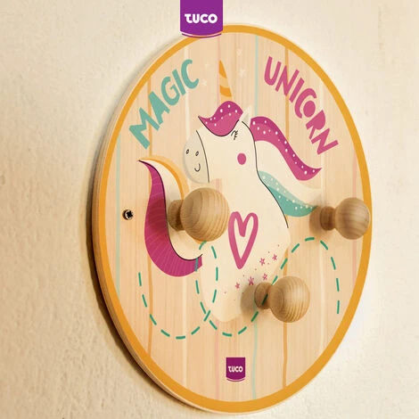 Attaccapanni bambini a tema Unicorni con originali disegni fatti a mano, per arredare la cameretta in modo simpatico e colorato.