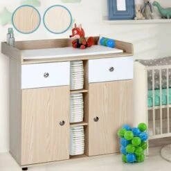 Nova Mobile Fasciatoio 2 Cassetti 3 Ripiani Aperti 2 Scomparti Con Ante In Rovere