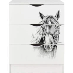 Casettiera Roma Bianca In Legno Con Cassetti – Motivo Ritratto Di Cavallo