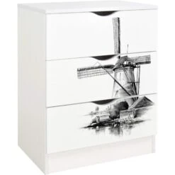 Casettiera Roma Bianca In Legno Con Cassetti – Motivo Mulino A Vento