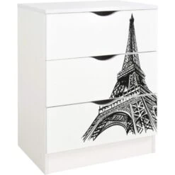Casettiera Roma Bianca In Legno Con Cassetti – Motivo Torre Eiffel