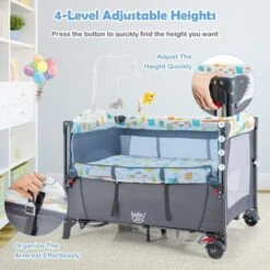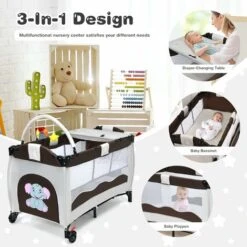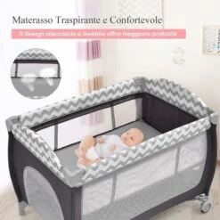 Culla Portatile Pieghevole Da Viaggio Con Zanzariera 0-2 Anni 60 Kg Grigio 106 92 55 Cm