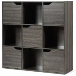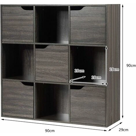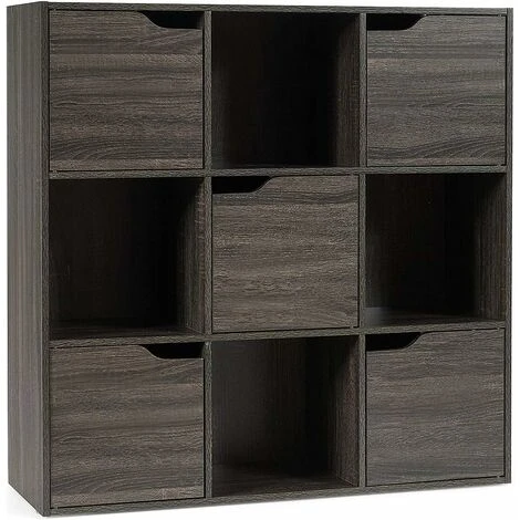 - ★Alta Qualità★Questa libreria a 9 cubi con 5 ante è realizzato in legno selezionato, robusto, resistente e anti-polvere, la robusta struttura con i ganci dietro attaccabile al muro evita che lo scaffale oscilli e fornisce una protezione aggiuntiva. La maniglia della porta liscia con dispositivo magnetico lo rende di facile utilizzo.