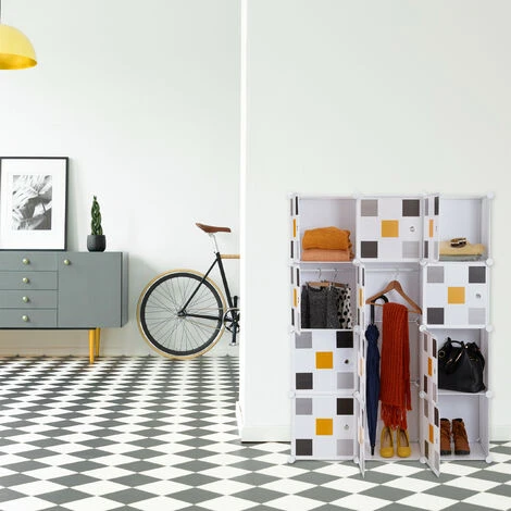 – 6 scomparti a cubo e 2 scomparti lunghi con aste appendiabiti