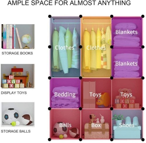 Dimensioni di ogni cubo: 35 x 35 x 35 cm (L x P x A), puoi ordinare facilmente vestiti, borsa, scarpe, giocattoli, coperte, ecc. Con l’armadio FREOSEN, la tua vita quotidiana sarà ordinata e più piacevole.